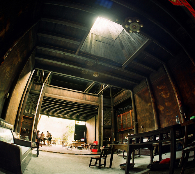 院內(nèi)廂房按家室的輩分依次居住。廂房的木窗雕龍刻鳳,每一板雕刻都是一個美麗的傳說。其中《梁祝》、《天仙配》、《蚌殼燈》、《彩龍船》、《鼠叼葡萄》、《老鷹抓雞》等雕刻更是入木三分,惟妙惟肖。樓上則主要用于囤積貨物,擺放雜物、晾曬衣物等。后側(cè)建有伙房和廁房,院落后部則是花園,花園的盡頭緊連著河邊的私家碼頭。