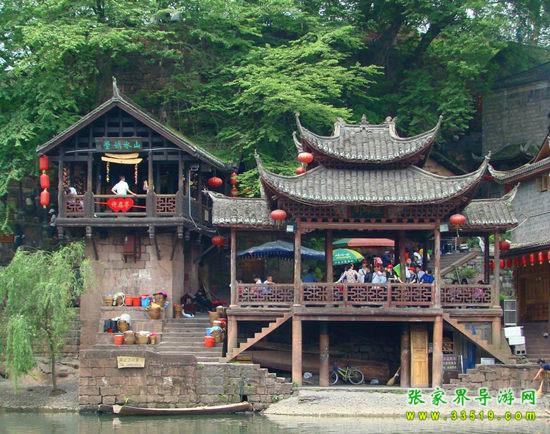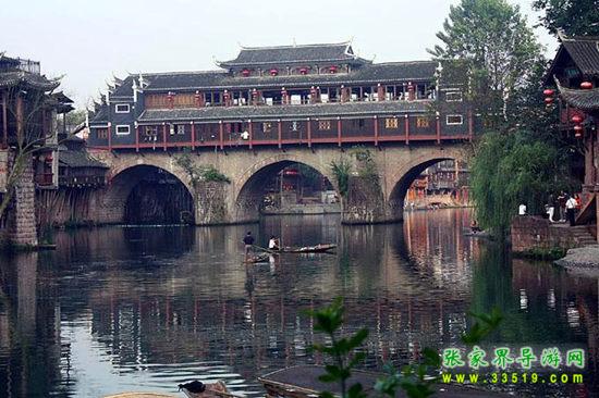 沱江河是古城鳳凰的母親河,她依著城墻緩緩流淌,世世代代哺育著古城兒女。坐上烏蓬船,聽(tīng)著艄公的號(hào)子,看著兩岸已有百年歷史的土家吊腳樓,別有一番韻味。順?biāo)拢┻^(guò)虹橋一幅江南水鄉(xiāng)的畫卷便展現(xiàn)于眼前:萬(wàn)壽宮、萬(wàn)名塔、奪翠樓……一種遠(yuǎn)離塵世的感覺(jué)悠然而生。沱江的南岸是古城墻,用紫紅沙石砌成,典雅不失雄偉。城墻有東、北兩座城樓,久經(jīng)滄桑,依然壯觀。