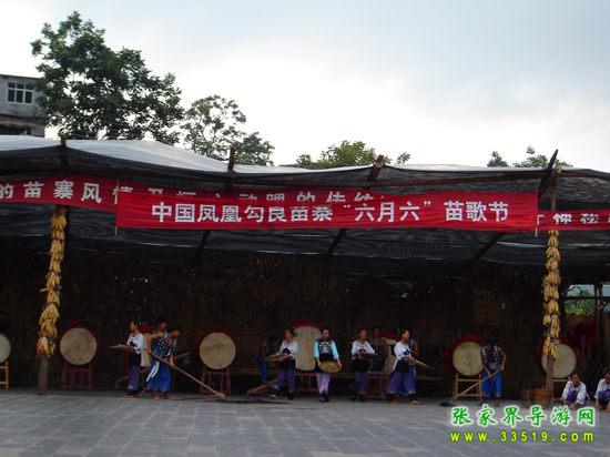 勾良苗寨位于歷史文化名城鳳凰的西北部落潮井鄉(xiāng)勾良村,距鳳凰古城29公里,是典型偏僻而原始的生紅苗部落,全寨分為上、中、下三個(gè)自然寨共有300多戶人家,1000多人口。由于其地理位置處于湘黔結(jié)合位上,中原漢文化與西南楚巫文化在這里碰撞整合,形成了一種獨(dú)特的文化現(xiàn)象,產(chǎn)生許多豐厚的民俗文化底蘊(yùn)。勾良苗寨始建于唐垂拱三年(公元679年),至今已有一千三百年的歷史,素有“苗疆第一寨”之稱,它民俗風(fēng)情濃郁、風(fēng)景秀麗,有苗家巫術(shù)絕技表演、古妖潭瀑布群、茶龍洞瀑布等風(fēng)景。