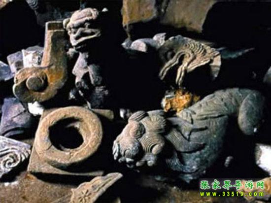 土司古墓群多集中于司城紫金山、雅草坪、帕桶湖三個(gè)地方,其中以紫金山最多。據(jù)勘察,紫金山一處共有土司王及其貴族墳?zāi)?09座。彭福石沖以后的土司、土官及其眷屬,都分別埋葬在這里。古墓的規(guī)模大小,視其官爵而定。從已挖開(kāi)的30多座古墓來(lái)看,基本形式是用土磚拱成半圓形,墓前有石人石馬,四周筑有圍墻,進(jìn)出必經(jīng)鐵門(mén)。墓室四壁上刻有精美的花草圖案和龍鳳圖案。棺材系楠木、梓木做成,用土漆漆成烏黑色,并用鐵鉤懸掛在石室之內(nèi)。隨葬器物也極為豐富,有金花、金譬、發(fā)插、耳環(huán)、蓮蓬等金銀飾物,還有各種玉器等。明代一些名土司彭顯英、彭冀南等人的墳?zāi)怪两裆斜4嫱旰谩9拍谷含F(xiàn)為湖南省重點(diǎn)文物保護(hù)單位。