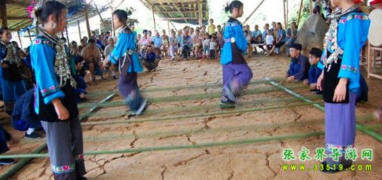 夢(mèng)幻苗疆進(jìn)寨必須經(jīng)過(guò)苗族人民接待遠(yuǎn)方賓客的歡迎儀式“攔門(mén)三卡” 唱攔門(mén)歌、喝攔門(mén)酒、敲苗家花鼓,通過(guò)后,方能進(jìn)寨。