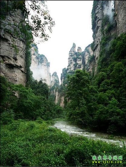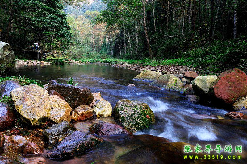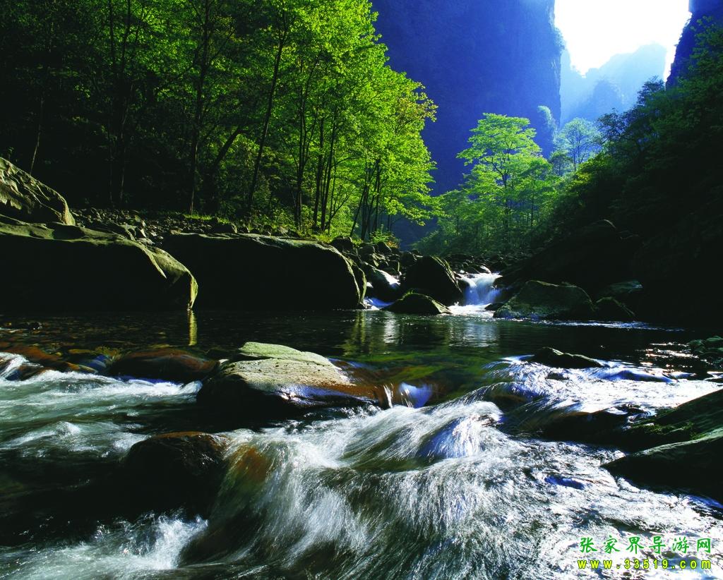 金鞭溪穿行于深壑幽谷之間,溪的兩邊千峰聳立,高入云天,樹(shù)木繁茂,濃蔭蔽日,這兒溪水潺潺、琉璃飛瀑,奇花異草與珍禽異獸同生共榮,構(gòu)成極為秀麗、清幽、自然的生態(tài)環(huán)境,被稱(chēng)為“世界最美的峽谷”,“最富有詩(shī)意的溪流”。