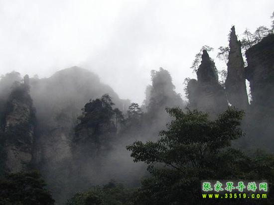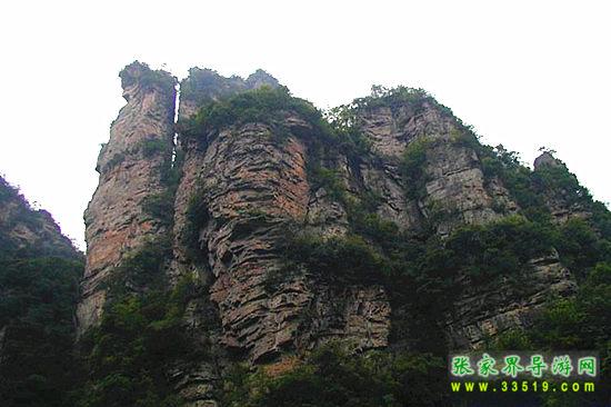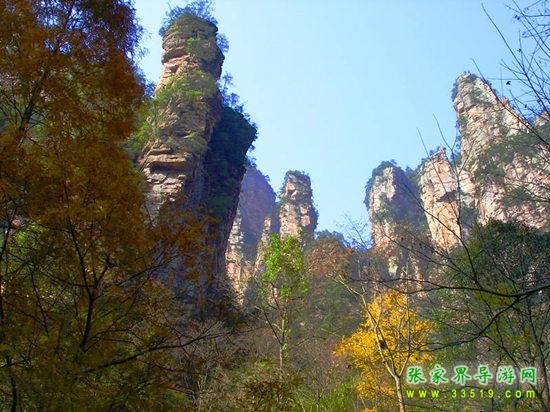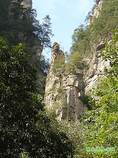 山谷中并排而立的三支山峰,有模有樣,有人叫他們“師徒取經(jīng)”,說(shuō)那是唐僧、孫悟空、沙和尚三人的“合影”??催^(guò)《西游記》的朋友,可能對(duì)這片風(fēng)景有似曾相識(shí)的感覺(jué),這兒曾是中央電視臺(tái)拍攝《西游記》的外景地。有些客人經(jīng)常問(wèn),重要人物豬八戒先生怎么沒(méi)有趕上這個(gè)“合影”呢?他忙里偷閑,在后面背媳婦去了(我們剛才不是看過(guò)“豬八戒背媳婦”那個(gè)景點(diǎn)嗎?)不小心誤了時(shí)辰。如此看來(lái),愛(ài)情和事業(yè)有時(shí)難免會(huì)有點(diǎn)矛盾。