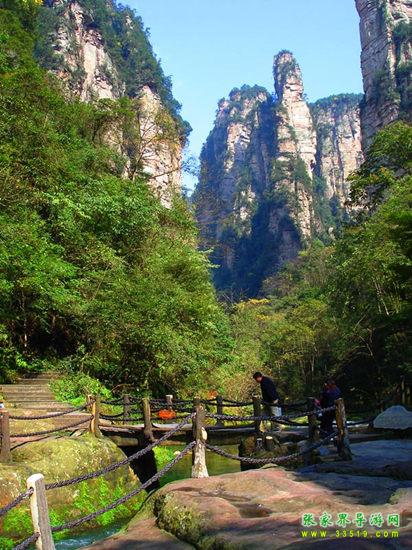 在長(zhǎng)途汽車(chē)站(出火車(chē)站左手邊)坐車(chē)去張家界國(guó)家森林公園,再?gòu)?a class="insidelink" href="http://www.szfeiya.com/Scenic/ZJJJQ/115322494.html" title="張家界國(guó)家森林公園">張家界國(guó)家森林公園門(mén)口進(jìn)入后,往前步行300米左右就是金鞭溪的入口。
