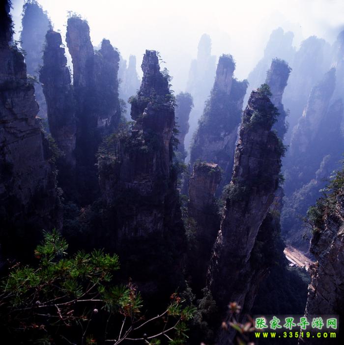 這是張家界最好的觀景臺(tái)之一,因賀龍?jiān)獛涀衷魄涠妹旅孢@個(gè)峽谷便是西海。西海中離我們較近的一支石峰頂部,有一塊石頭很像一艘船,上面的一棵松樹(shù)很像帆,人稱(chēng)此景為石船出海。