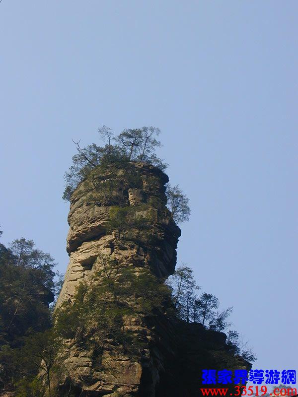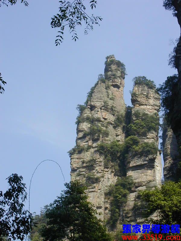 (花果山、水簾洞)孫悟空的花果山水簾洞到了。并不是張家界人過于牽強,胡亂把西游記的事兒往這兒湊,實在是巧合,《西游記》劇組的導(dǎo)游楊潔及唐僧、豬八戒、孫猴子、沙和尚等飾演者,一見到這地方就十分肯定地說:外景地選遍全國,只有張家界才真正是《西游記》筆下的神仙妖魔世界。大家順著我的指向往前看,左前方是帶著僧帽,披著袈裟,嘴中念念有詞的唐僧,緊跟在他后面的那座黑乎乎的石峰當(dāng)然就是沙和尚了;神通廣大的孫猴子半蹲在唐僧后側(cè)手搭涼篷,正在觀察敵情呢;豬八戒哪去了?不用說,不是貪吃貪睡,就是偷偷找小女子搭訕去了,花心去了。