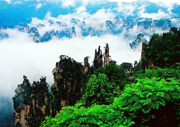 | 上 午: | 游覽“擴大的盆景,縮小的仙境”有峰林之王稱號的---【天子山景區(qū)】:“誰人識得天子面,歸來不看天下山”,可見天子山風光旖旎,景色秀美,景點眾多,仙女散花、御筆峰、天子閣、西海峰林、云巖等景點,【賀龍公園】:十大元帥之一的——賀龍銅像,還可登上天子山最高點天子閣,遠眺天子山全景。然后下山(下山有兩種方式:其一:可徒步兩小時經(jīng)臥龍嶺下行至山下。其二:也可在天子山索道上站乘坐索道下山), |