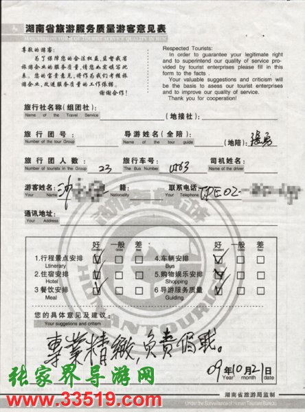 2009年10月18日沙先生一行23人接待質(zhì)量反饋單: