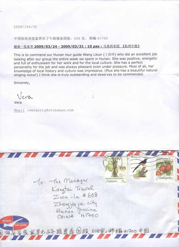 本公司導(dǎo)游,“王莉坤”由于帶團(tuán)期間出色的講解能力和高尚的人格魅力,贏得了游客們的高度評(píng)價(jià)。特發(fā)表揚(yáng)信如下: