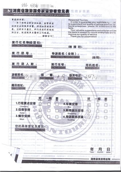 2011年4月26日陳先生一行4人旅游質(zhì)量反饋