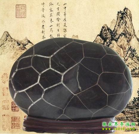 龜紋石學(xué)名“華瑩山多壁珊瑚石”,圖案為多角狀復(fù)體,呈六邊形,酷似龜紋,其對(duì)角線(xiàn)長(zhǎng)8-10毫 米,內(nèi)部結(jié)構(gòu)單骸緊密相連,呈蛛網(wǎng)狀。該化石為典型暖水生物群體,早在二迭紀(jì)前,經(jīng)海水沖積,地殼變化,形成珊瑚化石。桑植縣民族工藝廠(chǎng)利用龜紋石為原料生產(chǎn)出來(lái)的石硯、茶具及長(zhǎng)頸鹿等裝飾系列產(chǎn)品,其造型美觀(guān)、工藝精巧以假亂真,不僅在市場(chǎng)出售受到歡迎,而且遠(yuǎn)銷(xiāo)日本、東南亞以及港、澳、臺(tái)地區(qū),深得廣大顧客喜愛(ài)。與龜紋石同為加工工藝品極佳原料的還有為“海百合化石”,經(jīng)科學(xué)家鑒定,系棘皮生物門(mén)類(lèi),生長(zhǎng)于二迭紀(jì)前,屬海百合、海膽等群體,由根、莖、冠三部分組成,呈三角星、園孔、卵形、蟲(chóng)體等線(xiàn)條清晰,圖案分明。用該化石制作的香爐、云鼎等,高雅別致,古香古色。